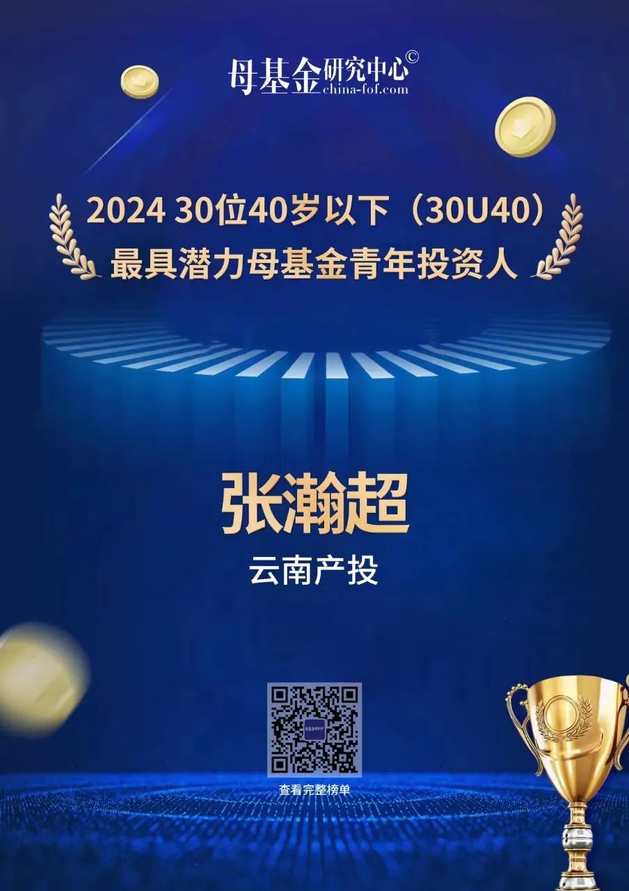 “五四”青年節(jié)之際,中國母基金研究中心評(píng)選出“2024優(yōu)秀青年投資人榜單”,集團(tuán)旗下云南產(chǎn)投公司投資經(jīng)理張瀚超榮登“最具潛力母基金青年投資人Top30榜單”。