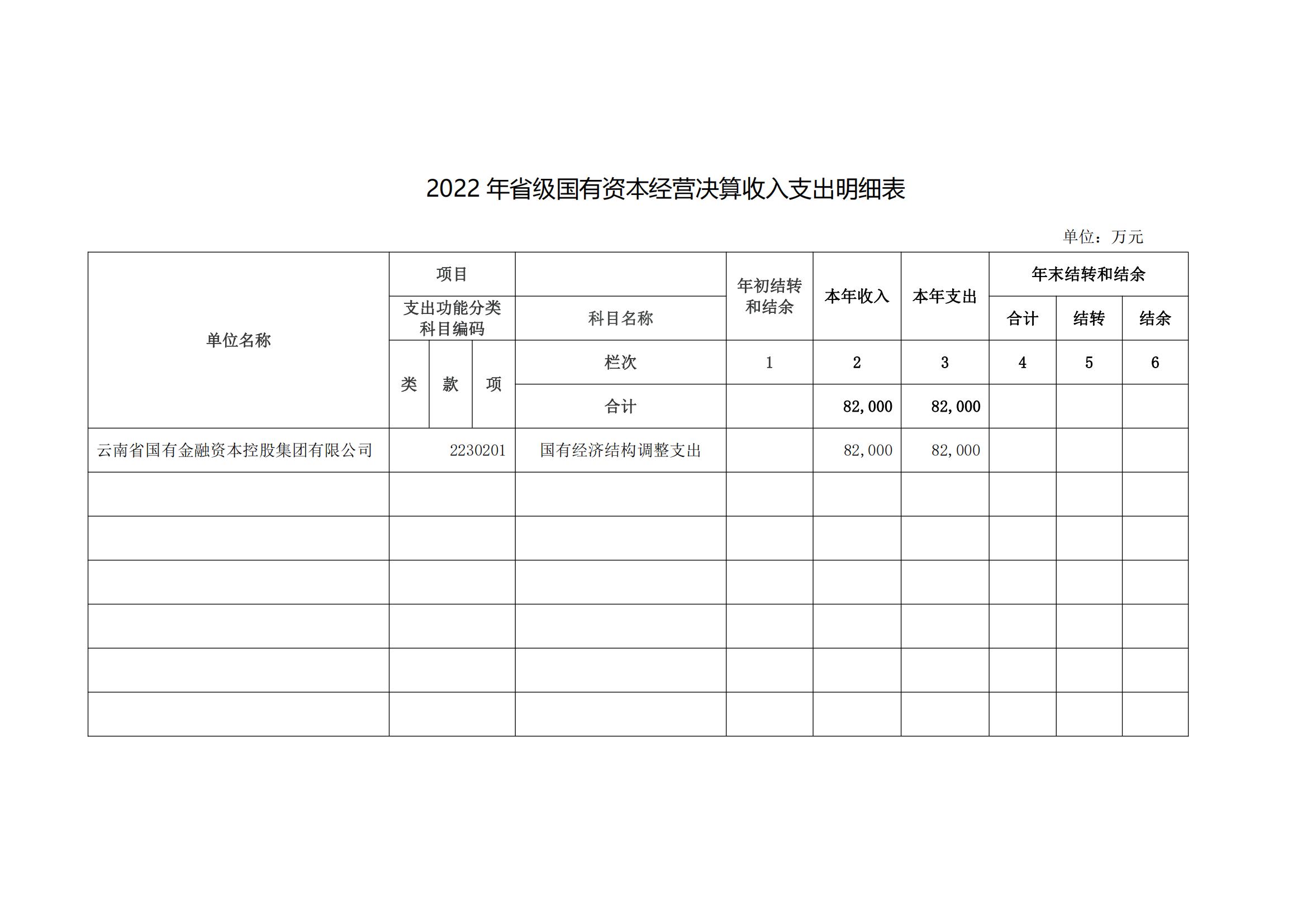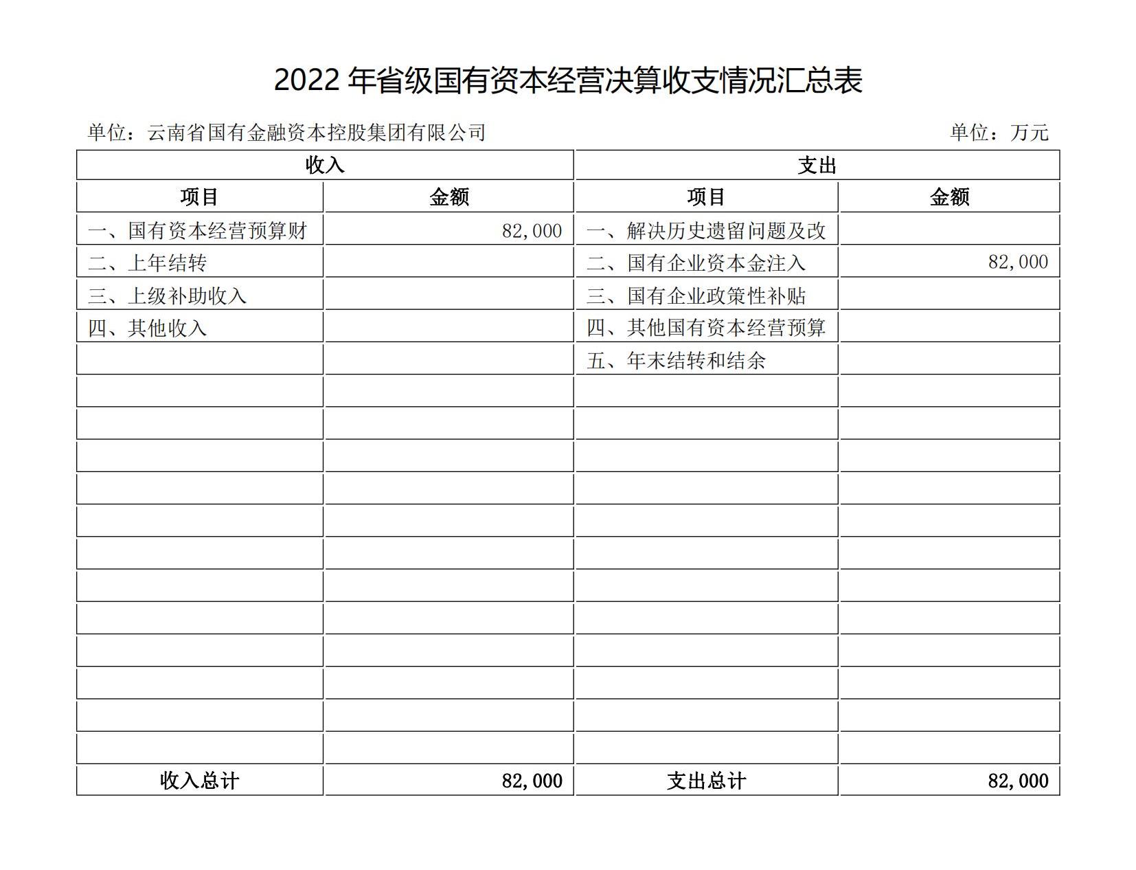 根據(jù)《云南省財政廳關(guān)于2022年度國有資本經(jīng)營決算的批復(fù)》(云財資〔2023〕71號)要求,現(xiàn)將我公司2022年國有資本經(jīng)營決算情況公示如下: