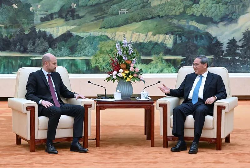3月27日,國務(wù)院總理李強(qiáng)在人民大會堂會見法國外長巴羅。