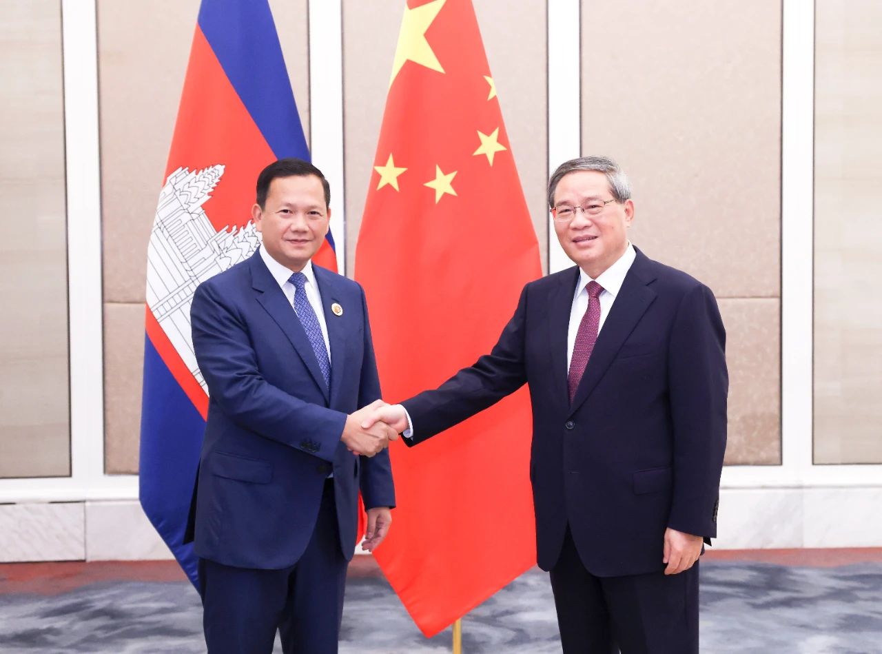 當?shù)貢r間5月27日上午,國務(wù)院總理李強在吉隆坡出席東盟-中國-海合會峰會期間會見柬埔寨首相洪瑪奈。