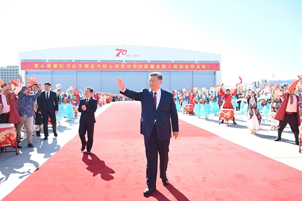 中共中央總書記、國家主席、中央軍委主席習(xí)近平在烏魯木齊出席新疆維吾爾自治區(qū)成立70周年慶祝活動后,25日乘專機返回北京。受習(xí)近平總書記囑托,以王滬寧為團長的中央代表團將于25日至28日在新疆各地看望慰問各族各界干部群眾。