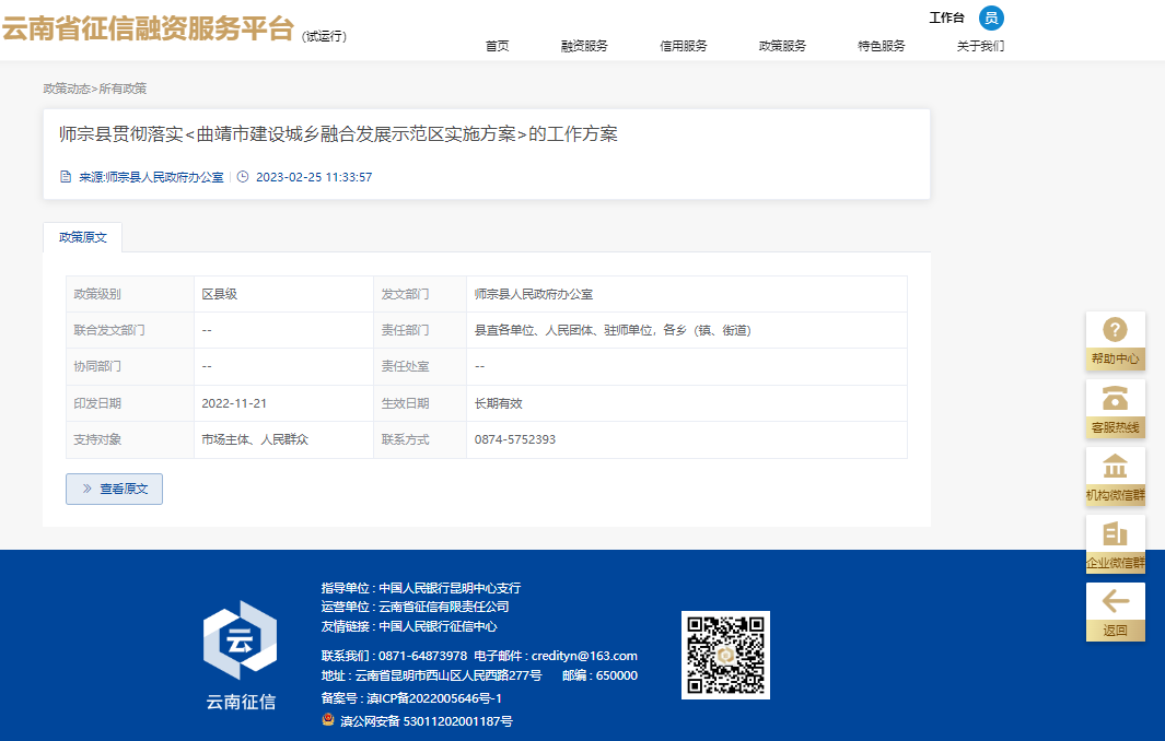 2023年2月28日,云南省征信融資服務(wù)平臺(tái)(以下簡(jiǎn)稱“省征信平臺(tái)”)順利與云南省惠企政策申報(bào)系統(tǒng)(以下簡(jiǎn)稱“省惠企平臺(tái)”)對(duì)接。“省惠企平臺(tái)”是全省統(tǒng)一的惠企政策申報(bào)系統(tǒng),由省工業(yè)和信息化廳負(fù)責(zé)建設(shè)管理,用于全面歸集涉企政策,實(shí)現(xiàn)政策匯集發(fā)布和普惠政策免申即享。