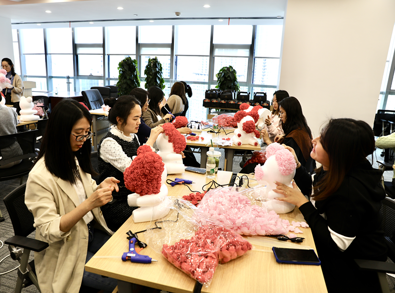 插花培訓(xùn)邀請了專業(yè)花藝師,帶領(lǐng)大家學(xué)習(xí)選材、配色、布局等插花方法,并進(jìn)行了現(xiàn)場實(shí)操,在花藝?yán)蠋煹闹笇?dǎo)下,女職工們紛紛拿起花朵,認(rèn)真構(gòu)思,投入創(chuàng)作,熱烈地相互交流,現(xiàn)場充滿歡聲笑語。今后,集團(tuán)工會(huì)將持續(xù)發(fā)揮在職工家庭文明建設(shè)和豐富員工精神文化生活中的積極作用,開展形式多樣的職工文體活動(dòng),進(jìn)一步增強(qiáng)工會(huì)組織的吸引力、凝聚力,助力集團(tuán)女職工對美好生活的追求,為女職工全面發(fā)展和幸福生活營造良好氛圍。