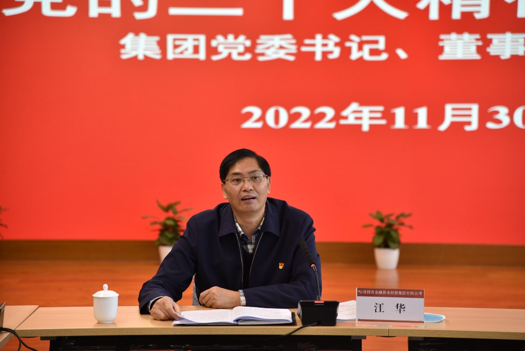 ?江華同志強調(diào),一是要筑牢政治忠誠,堅決擁護“兩個確立”,自覺做到“兩個維護”。二是要狠抓任務(wù)落實,切實推動集團高質(zhì)量發(fā)展;要充分發(fā)揮好金控集團的功能定位,找到著力點、發(fā)力點;融擔(dān)公司要發(fā)揮好放大器和穩(wěn)定器的作用,積極幫助企業(yè)紓困。三是要搶抓發(fā)展機遇,系統(tǒng)謀劃新一輪國企改革行動方案。四是要積極研究抓黨建工作促進企業(yè)改革發(fā)展工作,切實以黨建引領(lǐng)推動集團高質(zhì)量發(fā)展。五是要堅持底線思維,加強風(fēng)險防范,堅決守住不發(fā)生系統(tǒng)性金融風(fēng)險的底線。六是要樹立效率意識,加強責(zé)任意識,持續(xù)深化兩個革命,促進作風(fēng)轉(zhuǎn)變。七是要保持戰(zhàn)略定力,堅持全面從嚴治黨。