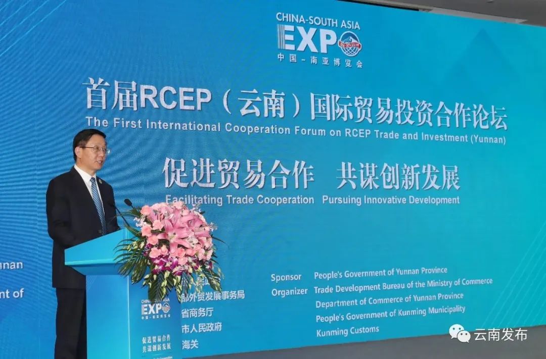 11月19日,以“促進(jìn)貿(mào)易合作 共謀創(chuàng)新發(fā)展”為主題的首屆RCEP(云南)國(guó)際貿(mào)易投資合作論壇在昆明開(kāi)幕。