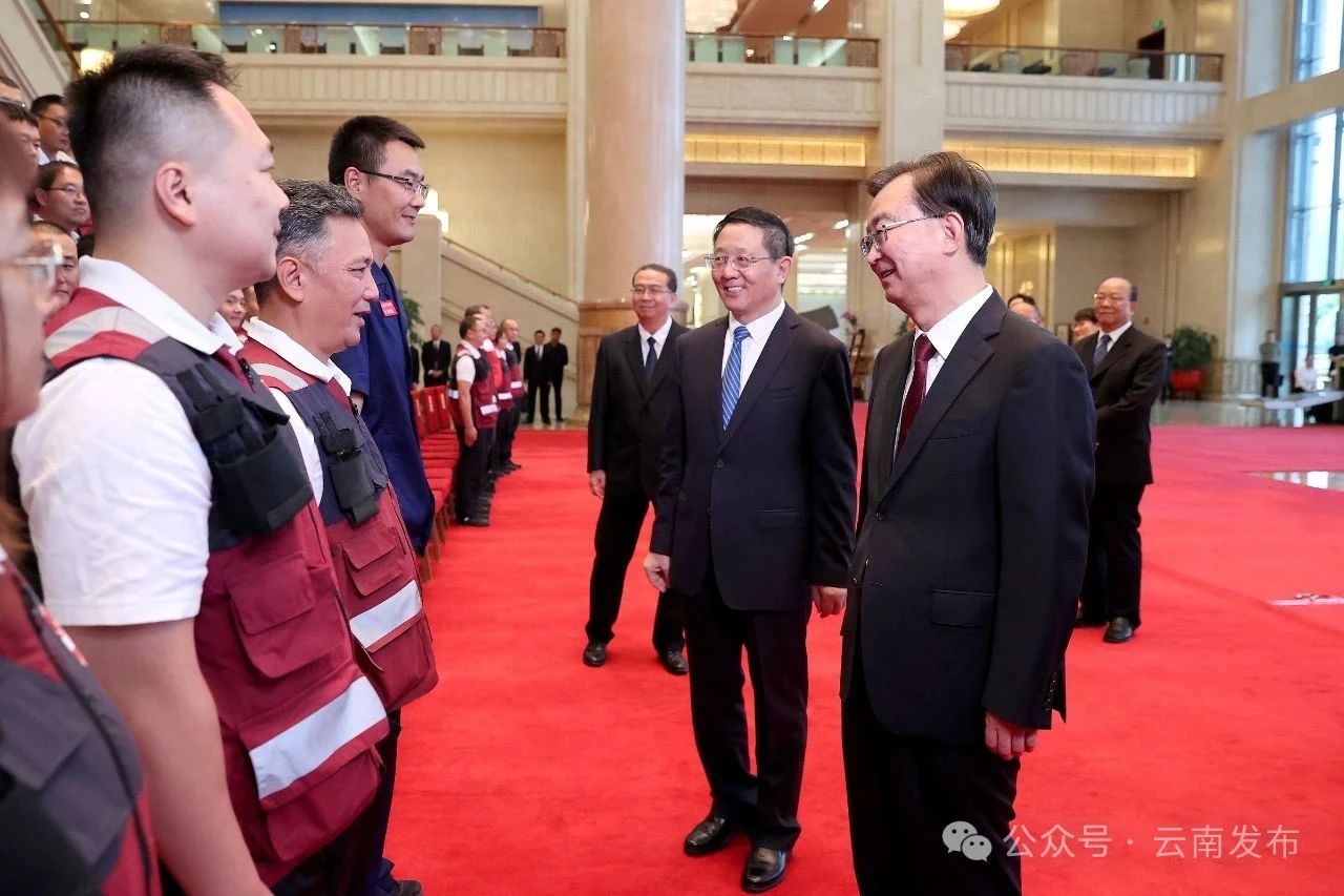 7月3日,省領(lǐng)導(dǎo)在昆明會見赴緬甸抗震救災(zāi)工作隊員,與大家親切交流。