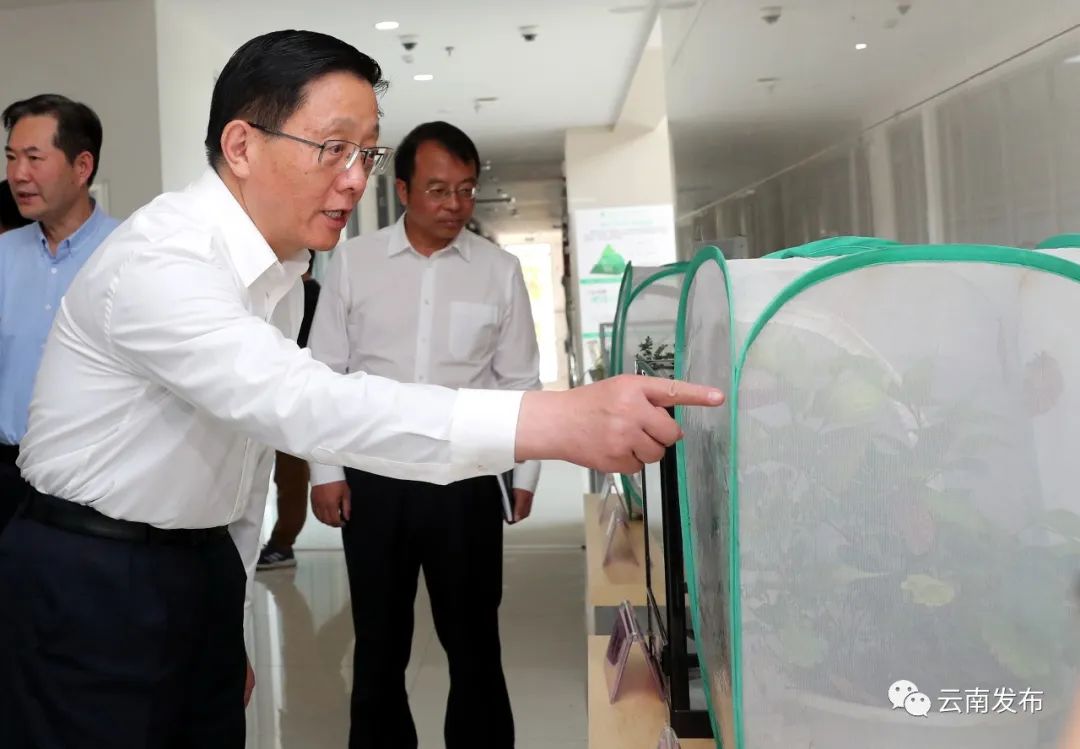 王予波在昆明動(dòng)物研究所調(diào)研模式動(dòng)物表型與遺傳研究設(shè)施、遺傳資源與進(jìn)化國(guó)家重點(diǎn)實(shí)驗(yàn)室、動(dòng)物模型與人類疾病機(jī)理重點(diǎn)實(shí)驗(yàn)室建設(shè)和研究工作情況,希望持續(xù)推動(dòng)基礎(chǔ)研究與應(yīng)用研究協(xié)同貫通,在探索生命科學(xué)未知領(lǐng)域,保障人類健康和保護(hù)生物多樣性等方面取得更多成果。在昆明植物研究所,他實(shí)地考察植物化學(xué)與西部植物資源持續(xù)利用國(guó)家重點(diǎn)實(shí)驗(yàn)室、中國(guó)西南野生生物種質(zhì)資源庫,他指出,小小種子事關(guān)“國(guó)之大者”,希望加強(qiáng)多學(xué)科合作研究,在生物醫(yī)藥產(chǎn)業(yè)發(fā)展、種質(zhì)資源保護(hù)利用等領(lǐng)域發(fā)揮更大作用。在與中外科學(xué)家現(xiàn)場(chǎng)交流時(shí),王予波說,云南是“動(dòng)物王國(guó)”“植物王國(guó)”,開展科學(xué)研究空間無比廣闊。希望大家把個(gè)人價(jià)值與國(guó)家戰(zhàn)略、云南需求緊密結(jié)合起來,大膽探索創(chuàng)新,多出研究成果。