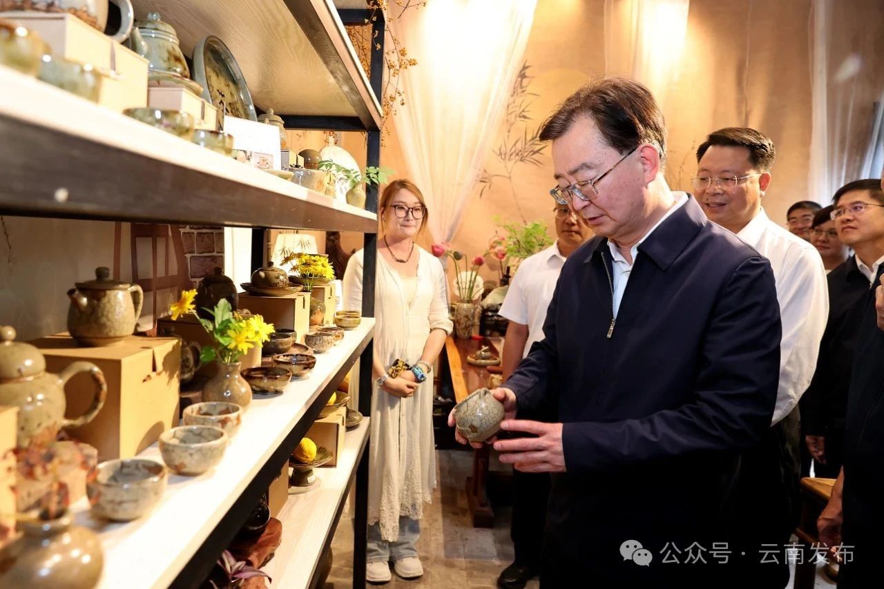 歷史文化名城建水,古城、古村與紫陶文化交相輝映。王寧來到建水古城、團山古村調(diào)研文旅融合發(fā)展,與當?shù)馗刹俊⒋迕?、商戶深入交流,強調(diào)要全面貫徹落實習近平文化思想,切實保護利用好古城古村、傳統(tǒng)街區(qū)、古建筑、重要文化地標等,創(chuàng)新思路舉措,堅持政府引導、社會參與,形成可持續(xù)投入、建設、發(fā)展的模式。王寧指出,云南不僅自然生態(tài)獨具魅力,深厚的歷史文化也讓人心向往之,要把文化保護傳承有機融入旅游旅居、鄉(xiāng)村振興,為地方發(fā)展賦能、為群眾增收添力。到千年臨安古城淘一把紫陶壺是很多游客的念想。王寧強調(diào),既要傳承傳統(tǒng)工藝,又要學習運用現(xiàn)代設計,與時俱進將建水紫陶推向更加廣闊的國內(nèi)外市場,煥發(fā)新的活力。