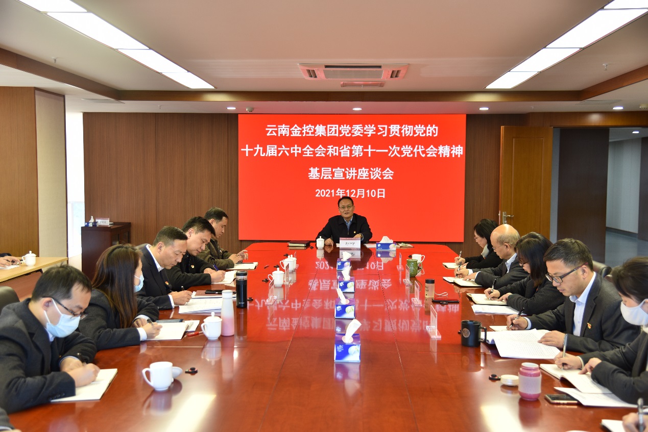 12月10日,云南金控集團黨委書記、董事長遲中華到省融資擔(dān)保公司宣講黨的十九屆六中全會和省第十一次黨代會精神,并開展實地調(diào)研。集團黨委副書記、工會主席李根斌,黨委委員、副總裁蔡瓊參加宣講和調(diào)研活動。