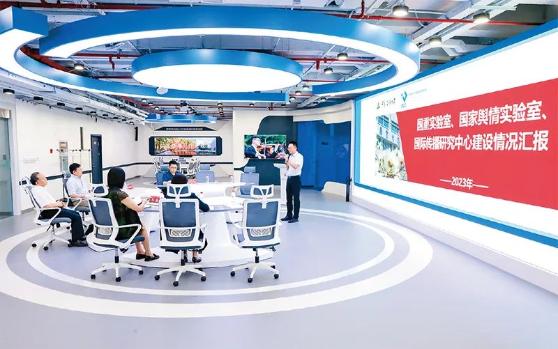 圖為2023年6月1日,教育部黨組第一巡視組在中國傳媒大學(xué)調(diào)研教育部首批試點建設(shè)的9家哲學(xué)社會科學(xué)重點實驗室之一——國家輿情實驗室。 教育部供圖