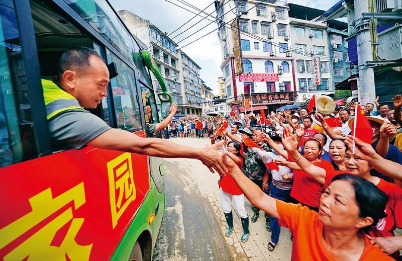 黨的十八大以來(lái),中國(guó)共產(chǎn)黨人繼承和發(fā)揚(yáng)黨的優(yōu)良傳統(tǒng)和作風(fēng),始終保持同人民群眾的血肉聯(lián)系。近期,貴州省榕江縣發(fā)生特大洪澇災(zāi)害,黨員干部沖鋒在前,構(gòu)筑起保護(hù)群眾、守護(hù)家園的堅(jiān)固防線。圖為2025年7月3日,當(dāng)?shù)厝罕娮园l(fā)涌上街頭,送別救援隊(duì)伍,表達(dá)感激之情。 新華社發(fā) 楊武魁/攝