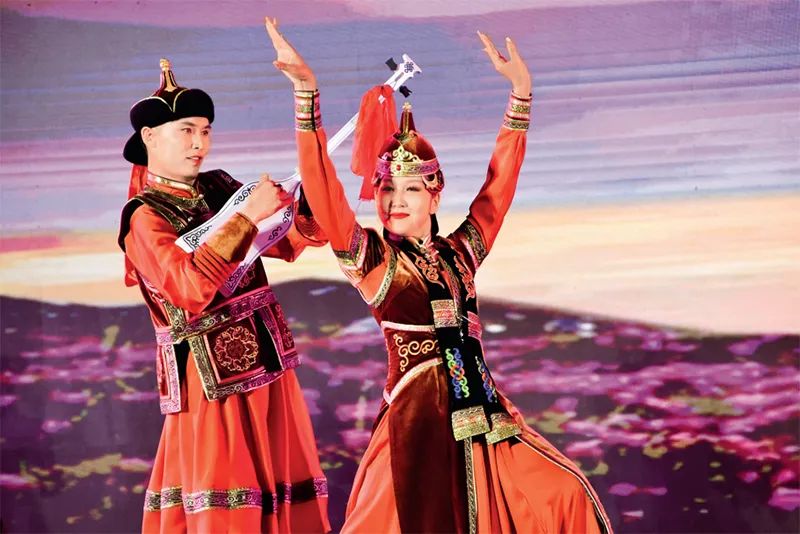 《瑪納斯》、《格薩爾》、《江格爾》三大民族英雄史詩是被納入我國第一批國家級非物質文化遺產名錄的文化瑰寶。2023年7月13日晚,在新疆克孜勒蘇柯爾克孜自治州舉行的第九屆瑪納斯國際文化旅游節(jié)上,三大史詩同臺會演,吸引眾多觀眾前來觀看。圖為新疆博爾塔拉蒙古自治州歌舞團演員在表演《江格爾》。 新華社記者 張瑜/攝