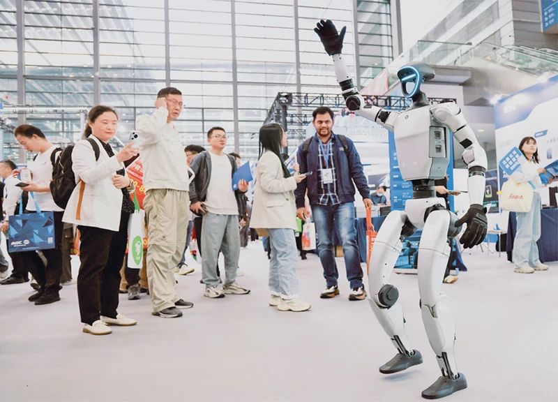 2025年4月9日,第十三屆中國電子信息博覽會(huì)在深圳會(huì)展中心(福田)開幕,展會(huì)聚焦智能終端、光電顯示、人工智能、大數(shù)據(jù)存儲(chǔ)、基礎(chǔ)元器件、低空經(jīng)濟(jì)等前沿重點(diǎn)領(lǐng)域,吸引了超千家企業(yè)參展。圖為開幕當(dāng)日,觀眾在觀看人形機(jī)器人展示。新華社記者 梁旭/攝