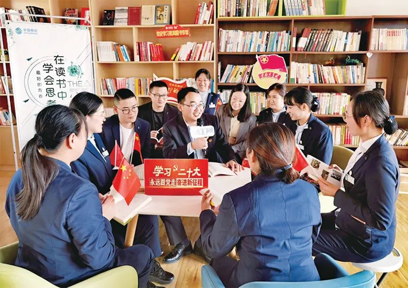 圖為2022年10月28日,江蘇移動“青年愛研習(xí)”宣講“青騎兵隊”向一線員工宣講黨的二十大精神。 江蘇移動團委供圖