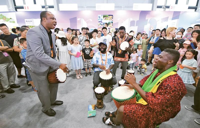 2023年中國國際服務(wù)貿(mào)易交易會上舉辦“一帶一路”共建國家特色文化展示活動,通過特色文藝演出、文化推介、護照打卡等一系列活動,展現(xiàn)共建國家文化風(fēng)采。圖為展示活動上,加納共和國駐華大使館展區(qū)的工作人員在現(xiàn)場即興表演。 新華社記者 鞠煥宗/攝