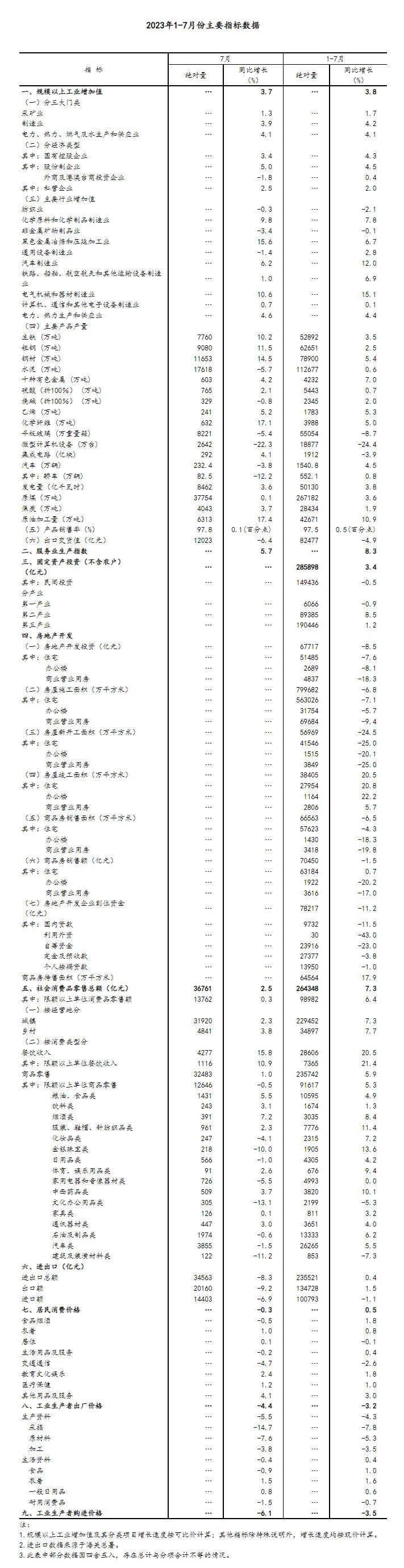 ?。?)規(guī)模以上工業(yè)增加值及其分類項目增長速度按可比價計算,為實際增長速度;其他指標除特殊說明外,均按現(xiàn)價計算,為名義增長速度。