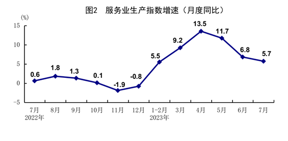 7月份,全國服務(wù)業(yè)生產(chǎn)指數(shù)同比增長5.7%。分行業(yè)看,住宿和餐飲業(yè),信息傳輸、軟件和信息技術(shù)服務(wù)業(yè),金融業(yè),交通運輸、倉儲和郵政業(yè)生產(chǎn)指數(shù)同比分別增長20.0%、11.2%、7.6%、7.3%。1-7月份,全國服務(wù)業(yè)生產(chǎn)指數(shù)同比增長8.3%。1-6月份,規(guī)模以上服務(wù)業(yè)企業(yè)營業(yè)收入同比增長7.5%。7月份,服務(wù)業(yè)商務(wù)活動指數(shù)為51.5%,業(yè)務(wù)活動預期指數(shù)為58.7%,其中,航空運輸、郵政快遞、電信廣播電視及衛(wèi)星傳輸服務(wù)、互聯(lián)網(wǎng)軟件及信息技術(shù)服務(wù)等行業(yè)商務(wù)活動指數(shù)位于60%以上高位景氣區(qū)間。