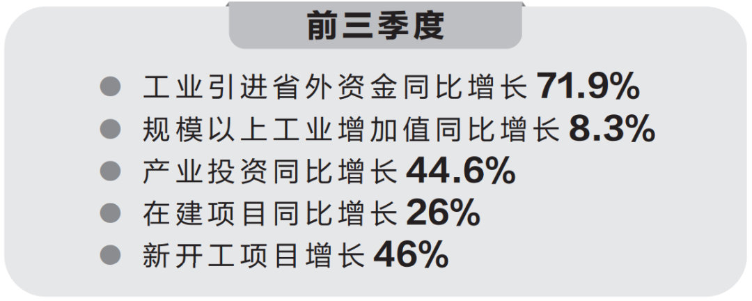 ?工業(yè)招大引強落地見效。全省上下圍繞優(yōu)勢資源、開放通道、延鏈補鏈強鏈狠抓招商,先后引進正威集團、廈門鎢業(yè)、中國五冶等重點企業(yè),一大批招商引資項目加快簽約落地,全產(chǎn)業(yè)鏈招商成效明顯。前三季度,全省引進省外到位資金同比增長24.2%,其中工業(yè)引資同比增長71.9%,占全部引資的33.6%。