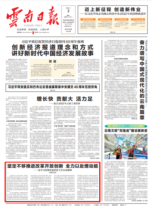 ?堅(jiān)定不移推進(jìn)改革開放創(chuàng)新,全省各級各部門要抓好抓實(shí)推動(dòng)高質(zhì)量發(fā)展的具體任務(wù),瞄準(zhǔn)重點(diǎn)領(lǐng)域、難點(diǎn)領(lǐng)域持續(xù)發(fā)力,讓發(fā)展新活力不斷釋放、新動(dòng)能不斷積聚、新優(yōu)勢不斷增強(qiáng),以高質(zhì)量跨越式發(fā)展推進(jìn)云南社會主義現(xiàn)代化建設(shè)。
