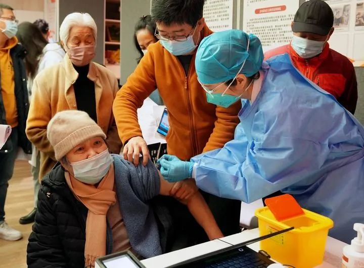 ?12月9日,在上海市黃浦區(qū)打浦橋街道大同居委會,接種小分隊的護士在為老年人接種新冠疫苗。新華社記者 劉穎 攝