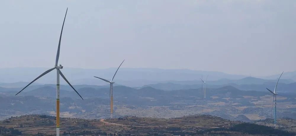 位于曲靖市富源縣的國電投富源西風電場,幾臺風機正在運轉。浦超 攝