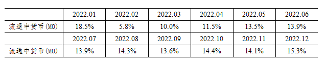 注4:自2022年12月起,“流通中貨幣(M0)”含流通中數(shù)字人民幣。12月末流通中數(shù)字人民幣余額為136.1億元。修訂后,2022年各月末M1、M2增速無明顯變化。修訂后M0增速如下: